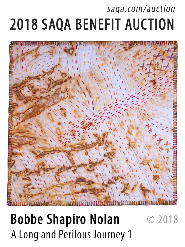 It’s getting to be that time of year again. Studio Art Quilt Associates (SAQA) holds an auction of amazing 12″ x 12″ art quilts in September. This year it goes from September 14 through October 7, so mark your calendar! In addition to seeing all the quilts, you can view members’ dream collections of six quilts.