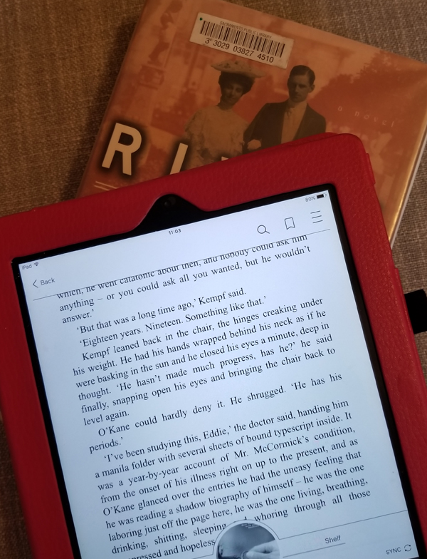 I had to put my library copy of Riven Rock on hold. I soon realized how long the book was, so I thought I’d better start reading the ebook while I waited for the hard copy. Wow, bookmarking pages and conducting searches did make it great to read Riven Rock for the purpose of writing about it. But, I will always want to write in my books. That act gives me a memory aid of what really struck me about a particular passage or chapter. The hardest thing about reading ebooks, though, is the hard part. Dang, when that iPad falls on your face after you fall asleep while reading, it really hurts!
