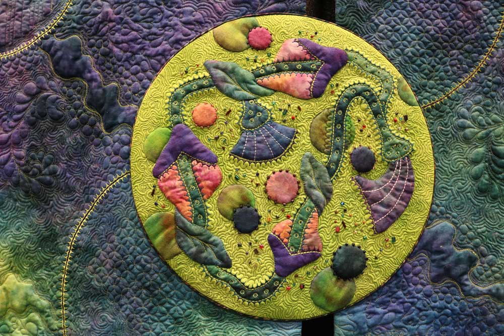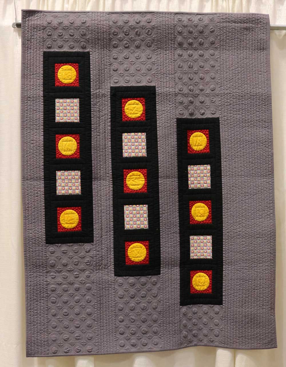 The next three quilts caught my eye with their circular details. The texture in Jody Robinson’s Keep It Simple was hard not to touch. The pattern of quilted dots turned this simple quilt in to something worthy of its blue ribbon.
