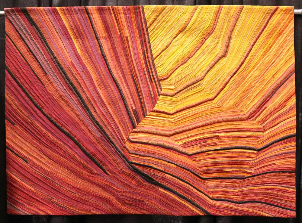 For me there were a few quilts that caught my eye from a distance, and I was pulled in to look at them closer. Christine Seager’s Bush Fire was the first one. Very simple quilting, but what a wonderful composition. I’m not sure that I saw trees before I read the title, but afterward I could see nothing but fire and trees.