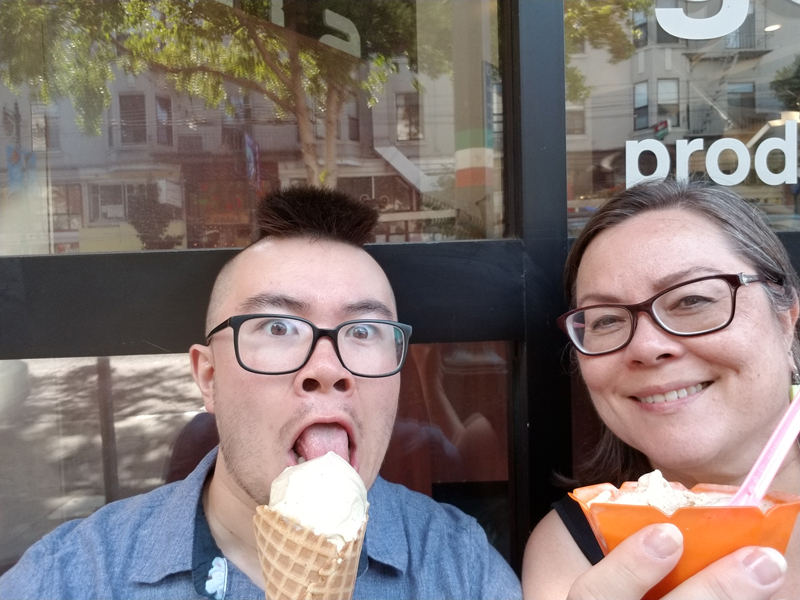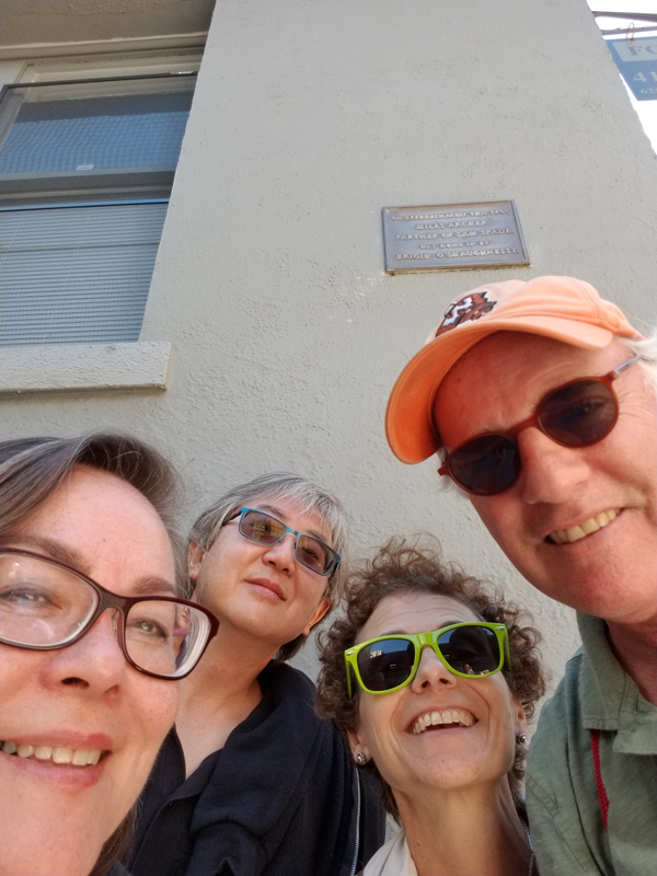 I also took trips to the Bay Area and San Francisco, one of my favorite cities. Taking my Precious Pup to see the Summer of Love exhibit at the De Young Museum was simply joyous. On another occasion, Neil and I spent a great day with old friends, Andy and Amy. It’s fun to hang out in this city with people who love discovering the spot where Miles Archer was gunned down by Brigid O’Shaughnessy.